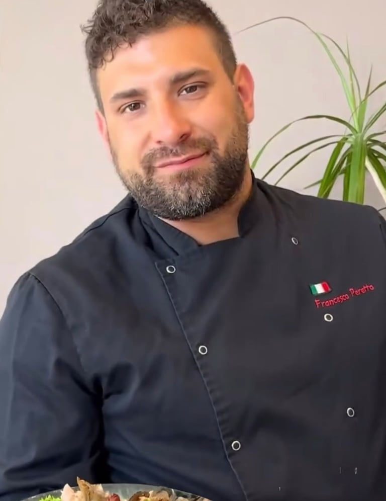 Francesco nació en Cafasse, un pequeño y encantador pueblo a las afueras de Turín, en el norte de Italia. Entre montañas, aromas a pan recién hecho y el bullicio del mercado local, descubrió su pasión por la cocina desde muy joven. Su abuela, una mujer de carácter fuerte y manos sabias, le enseñó los fundamentos del sabor: el respeto por los ingredientes y el amor por el tiempo. “Un plato se entiende con el corazón antes que con la boca”, solía decirle. Esa frase marcaría toda su trayectoria.